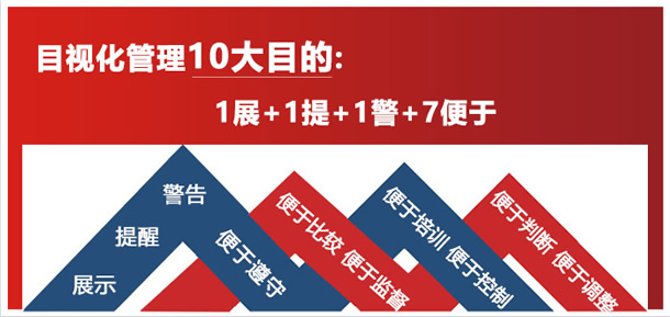 目視化標牌展板設計結合人體視覺感知信息優勢,使員工容易明白、易于遵守、樂意執行。
